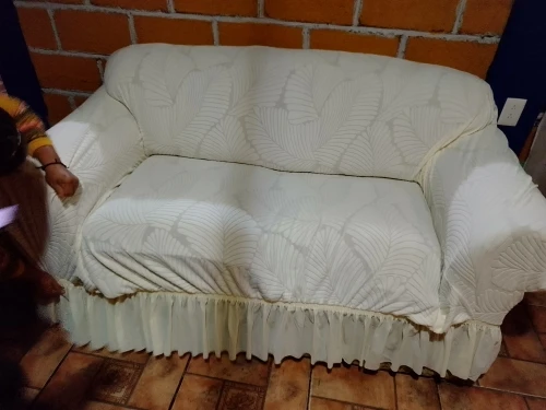 Housse de Canapé avec Jupe Motif Feuillage Beige