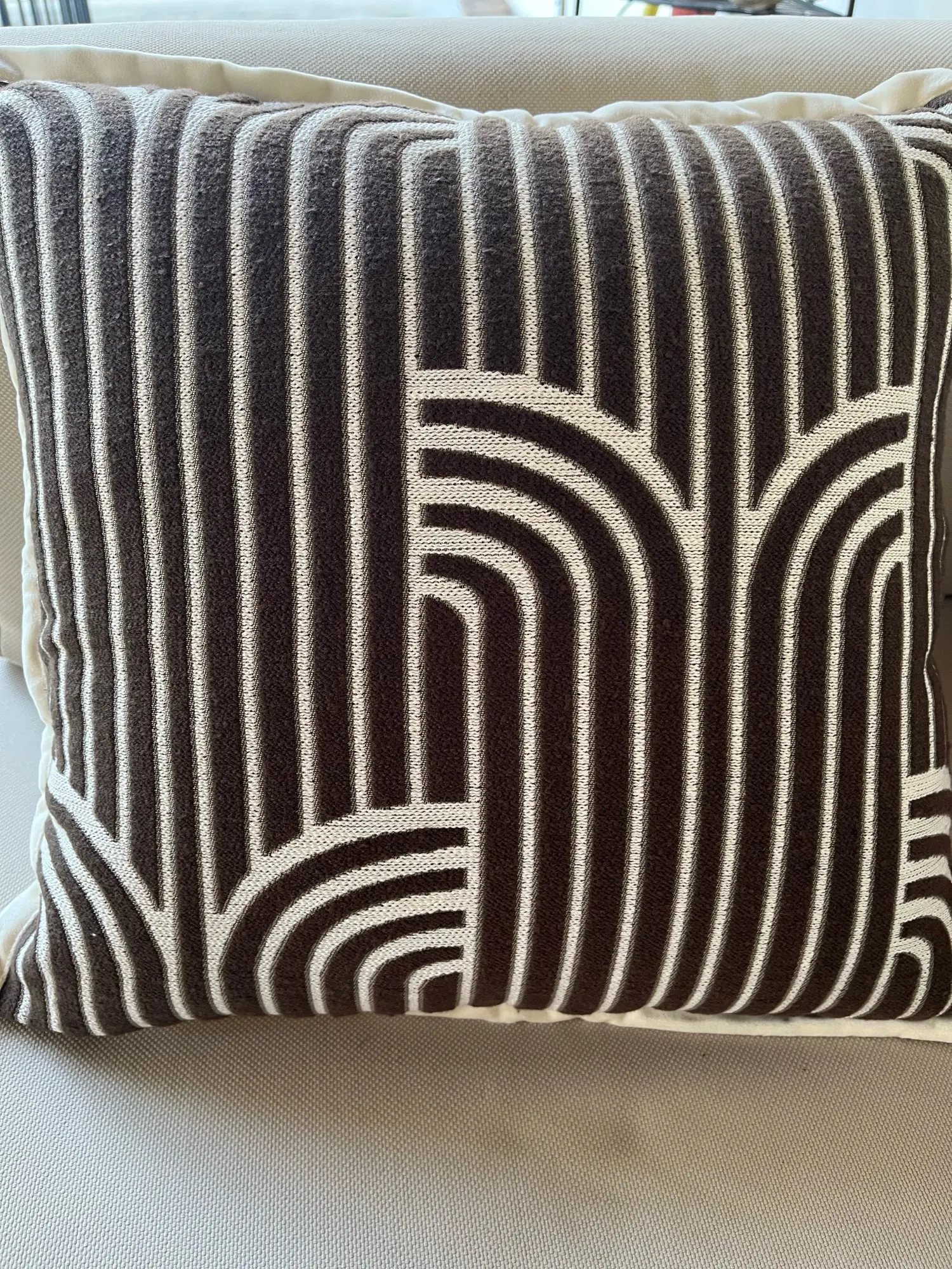 Housse de Coussin Luxe Léger avec Relief Marron et Blanc